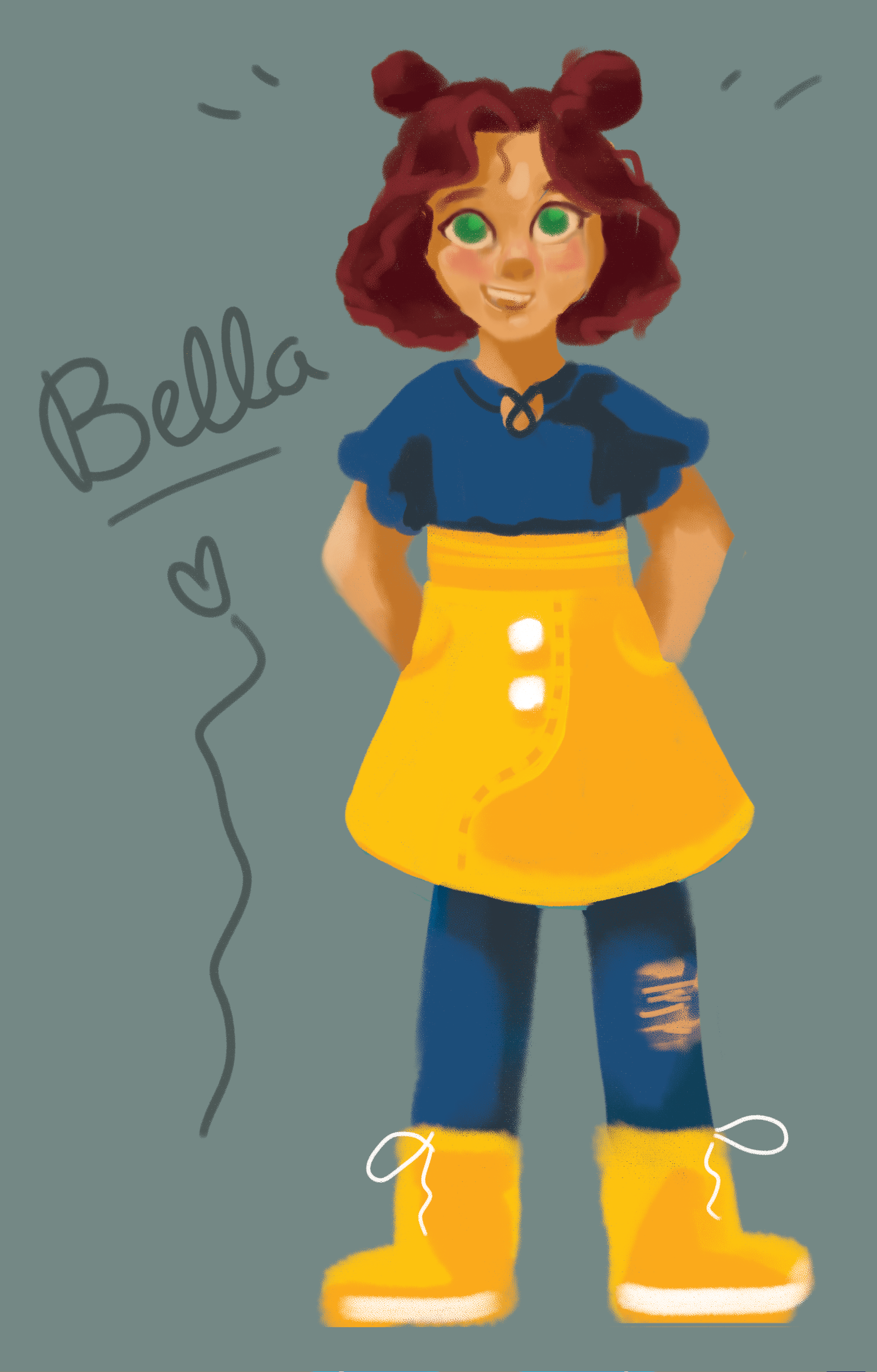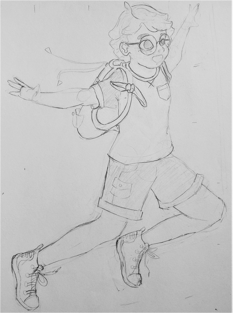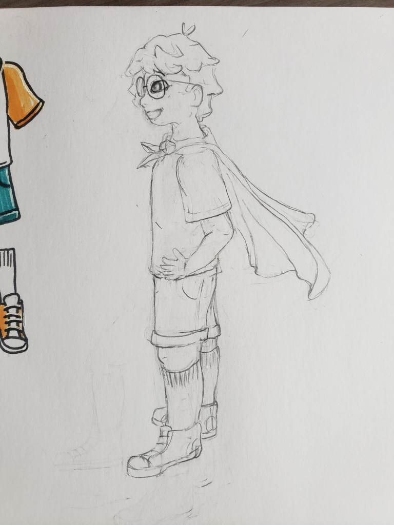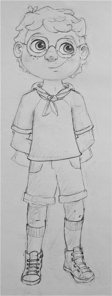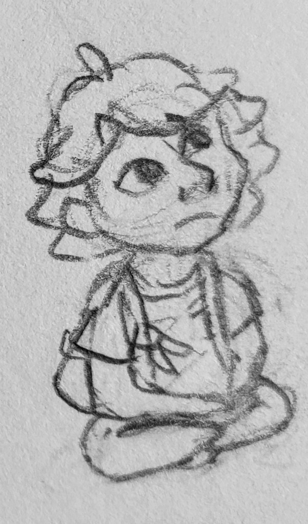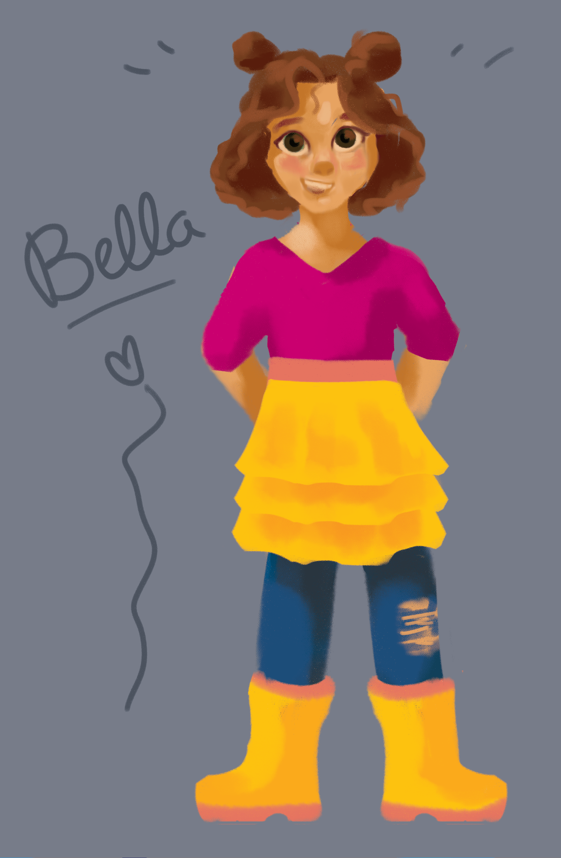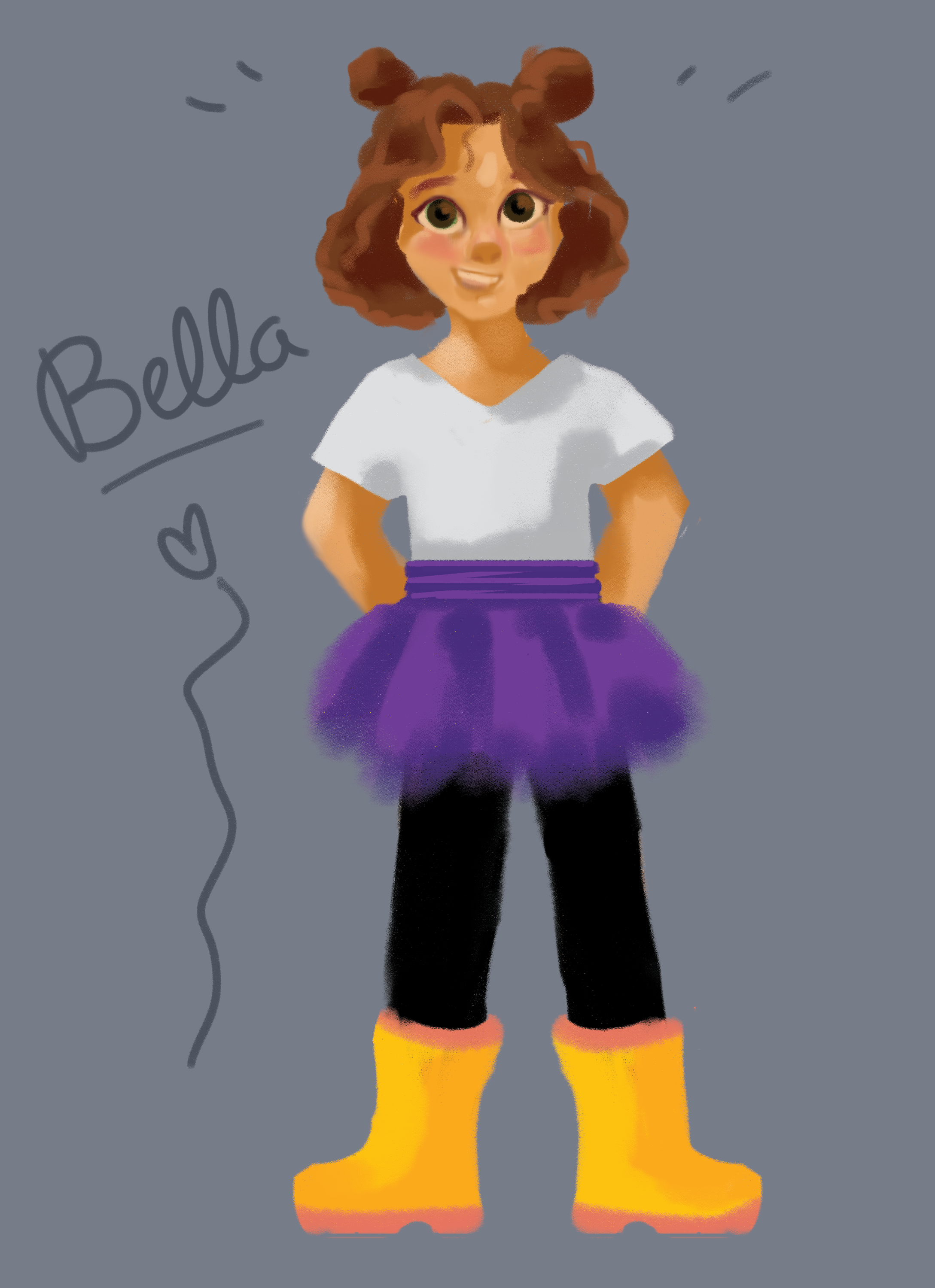 Please note!! We are still beginning stage. Anything and everything here will most likely change, so don’t get too attached to any of these. Consider David’s development from where it started to where it is now, and note that I only started Bella’s design early 2023. All these sketches represent the first stage of her development process, but the most recent one with the purple tutu is my favorite. Instead of diving straight into her design over the past few months, I’ve instead invested my time conceptualizing her personality, environment and relationships. It’s important to do that first because our appearance is either something we choose unwillingly or not. It tells a story of how we view ourselves and the world, or reveals our circumstances in which we don’t get much choice. When you bring the reader along to experience that reason/meaning with the character in the story, it makes for a very memorable character design. With that said, you’ll notice three things that stand out in her design. 1- her side bunned hair, 2- a bright colored skirt/wrapped, and 3- rain boots. This odd combination is very intentional because those are the only three things about her appearance that she’s able to choose. In other words, wearing those things in that way is how she expresses herself.